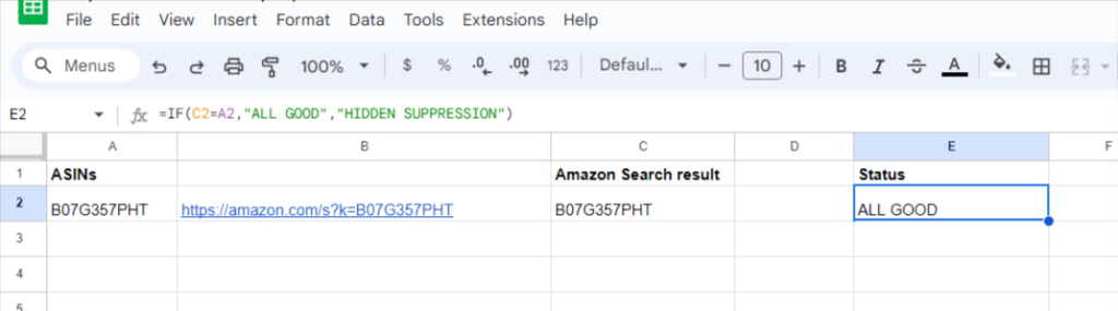 When managing a large catalog, you can apply this method across a full list of ASINs in your Google Sheets, automating the visibility check for hundreds or thousands of products at once. The process is seamless and saves hours of manual work.
