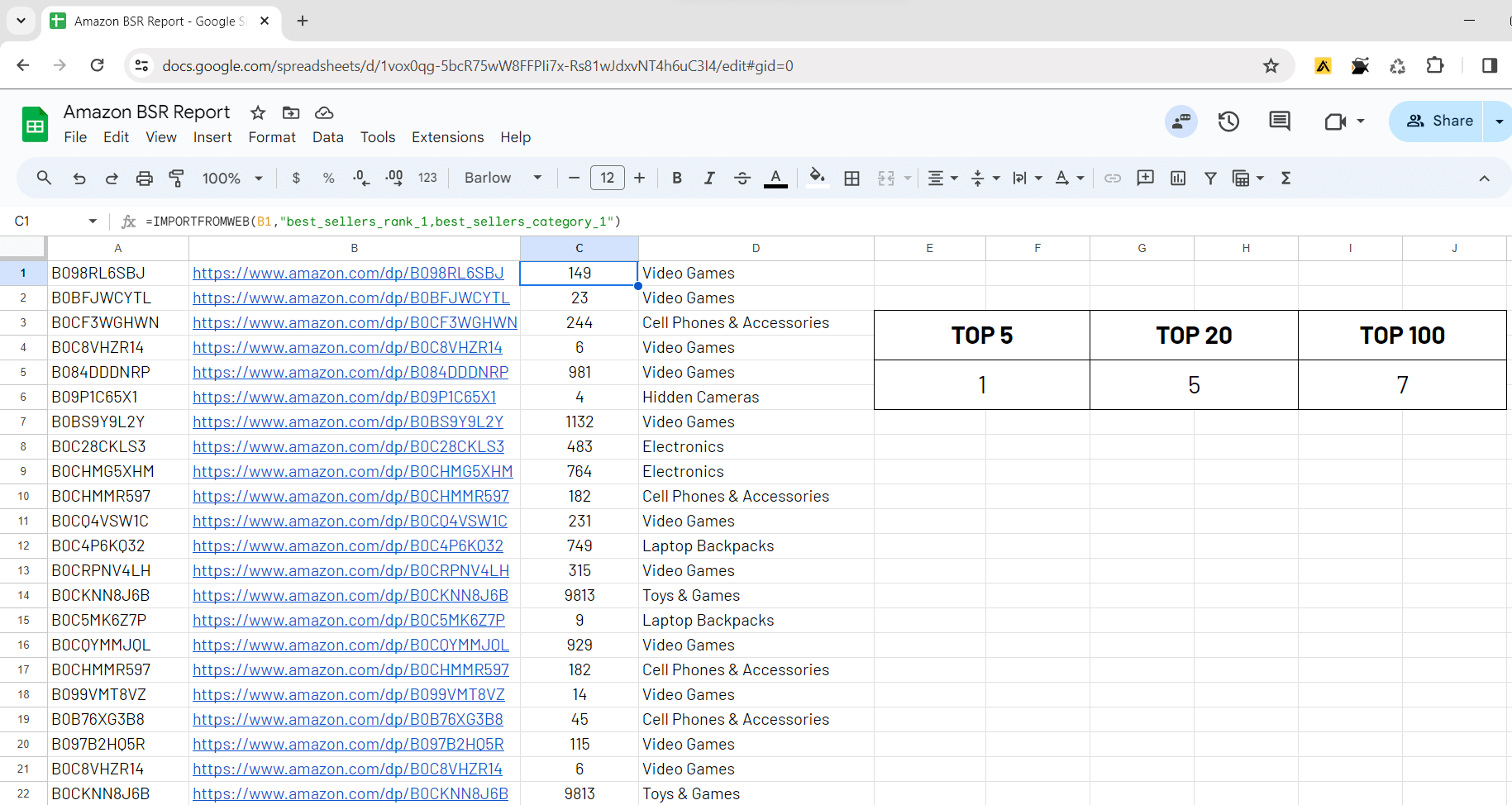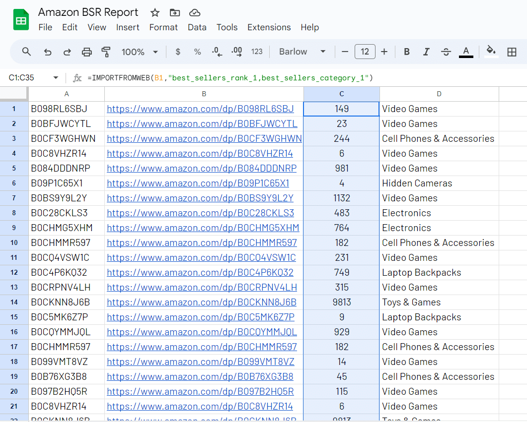 With the BSR data successfully extracted into your spreadsheet, you’re ready to analyze trends and performances of our ASINs.
