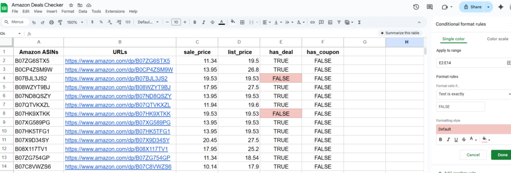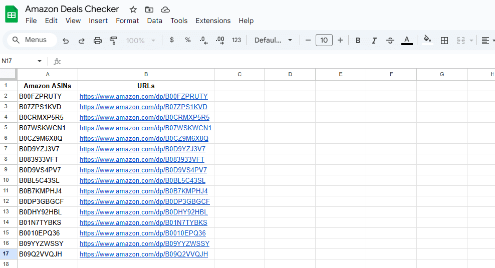 If you want to save time, you can start with our ready-to-use Google Sheets template and customize it to your needs: Amazon Deals Checker
