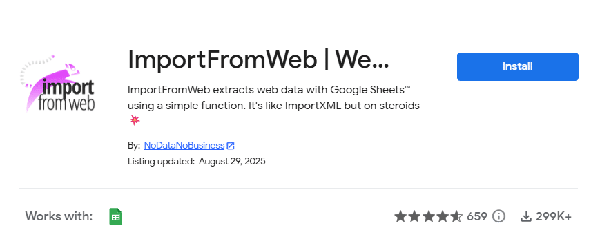 Go to Google Workspace Marketplace to download the add-on 👉 ImportFromWeb.
