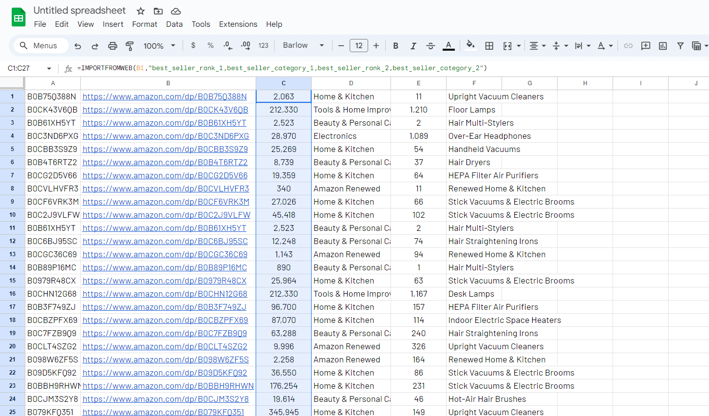 Use case: scrape Amazon BSR on hundreds of products with Google Sheets