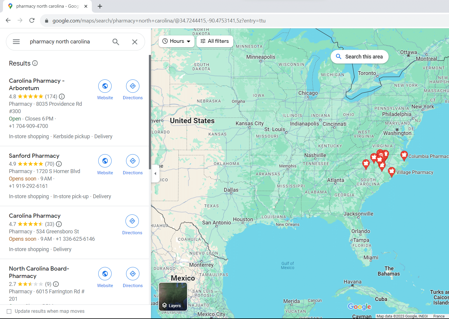 On Google Maps, search for “pharmacy north carolina“.