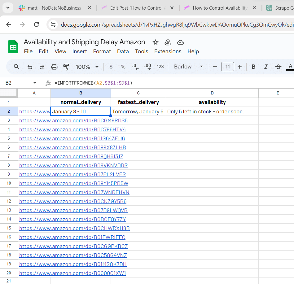 In essence, tracking the availability/shipping delay using a tools like ImportFromWeb to build and maintain your tracking on a spreadsheet can be a game-changer for your Amazon business, helping you maximizing your potential for success.