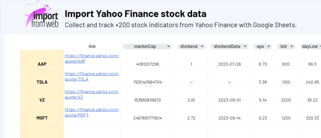 ImportFromWeb helps you retrieve this data and display it as a well-structured table that you can manipulate with ease
