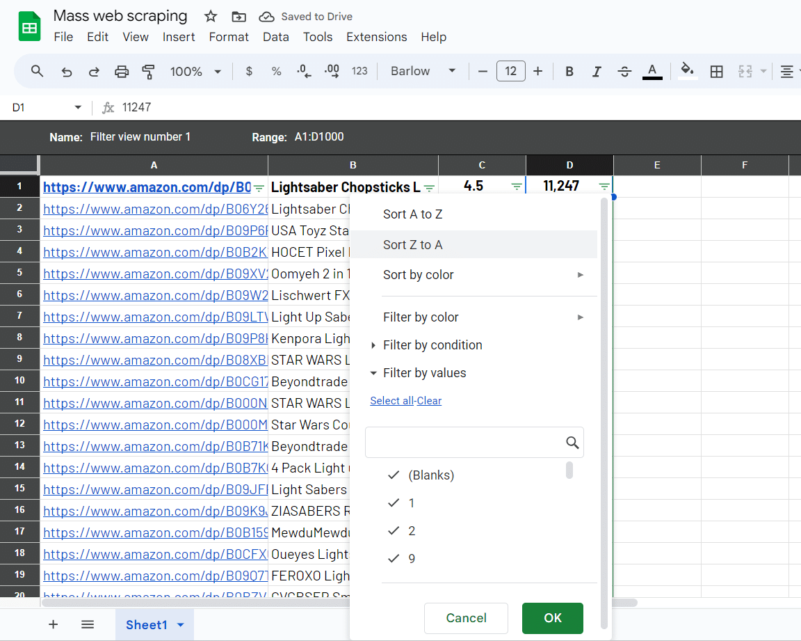Step 3. You can now sort and filter your view of the data, as well as use it in calculations.
