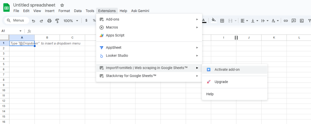ImportFromWeb is a Google Sheets add-on, i.e. a third-party tool or extension that enhances the functionality of Google Sheets. Like other add-ons it can be installed from the Google Workspace Marketplace and provide additional features or automate tasks that are not natively available in Google Sheets.