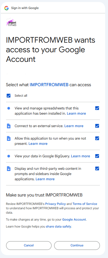 The first step to get started is to install ImportFromWeb, from the Google Workspace Marketplace.