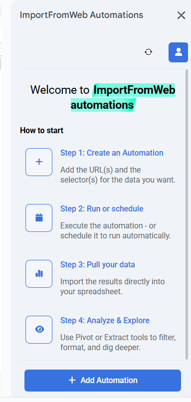 A new sidebar opens giving you access to ImportFromWeb automations