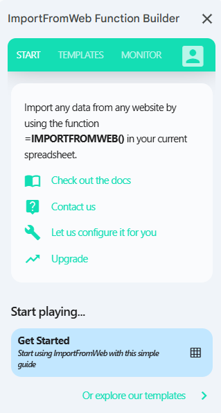 To improve usability, the add-on provides a sidebar which helps you get the most out of your IMPORTFROMWEB() function.