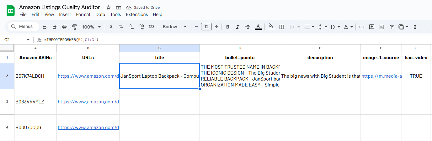 Within seconds, you’ll get the data for the first ASIN.