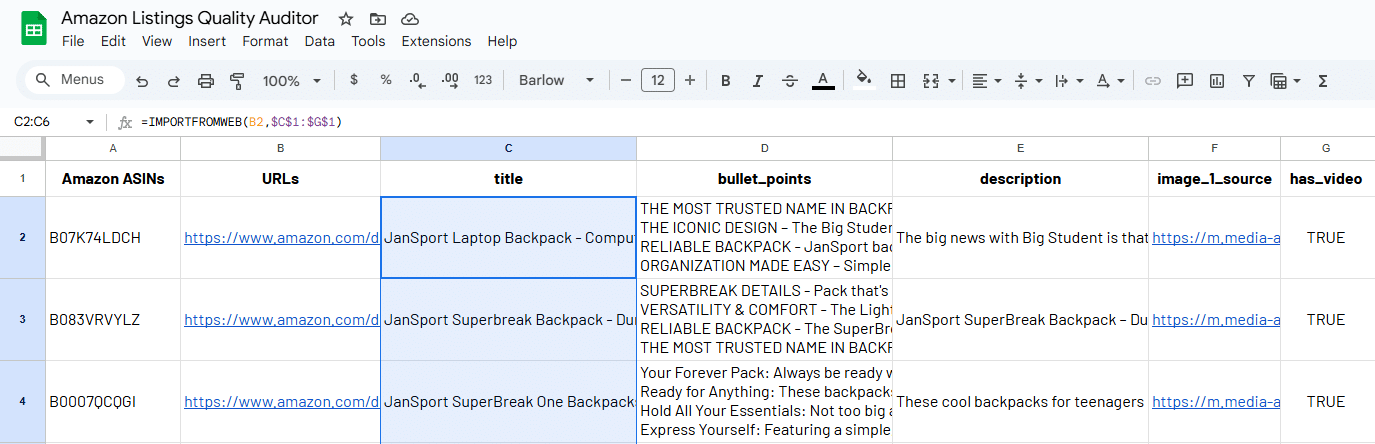 Managing a large number of Amazon product listings can quickly become overwhelming, especially when you need to review key details like titles, images, bullet points, descriptions and videos. The Amazon Content Extractor lets you extract all this information for multiple ASINs at once, directly into a spreadsheet – saving you from tedious manual checks and giving you a clear overview of any catalog’s content.