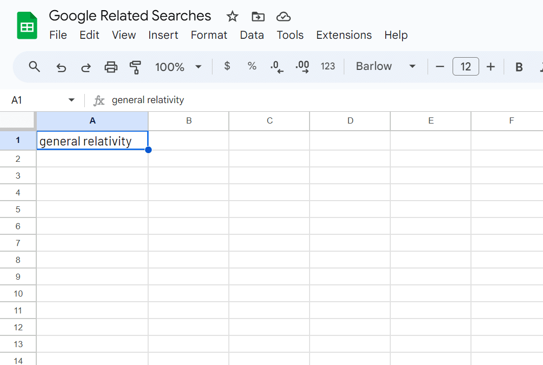 Add the search terms you want to use to your spreadsheet: